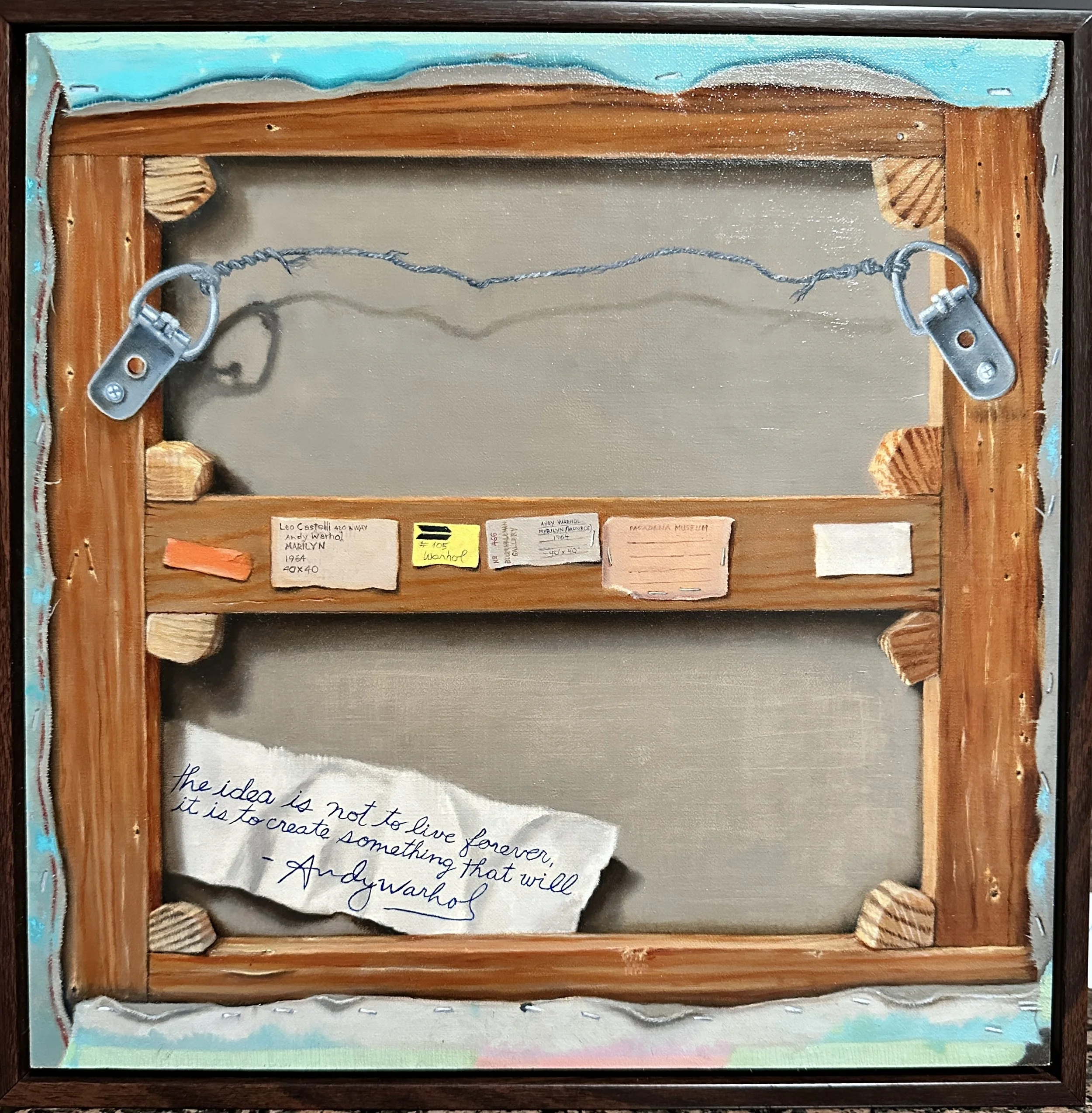 “Marilyn’s Verso” 12x12 oil on linen panel. A trompe-l'oeil inspired by the verso of Andy Warhol’s 1969 silkscreen.